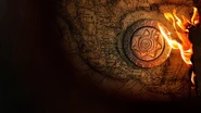 Elsewhere, a bearded man, is pasting another picture of the symbol that is found on Jess' medallion, on his prison cell wall.
